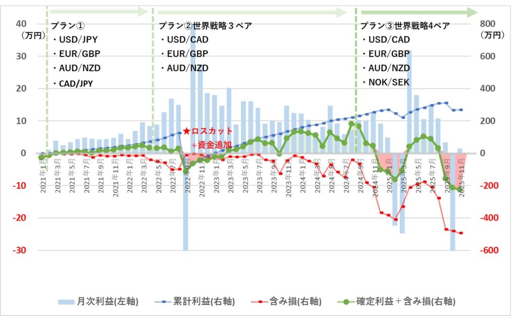 【FX自動売買】トラリピ運用実績(2025年11月)~レンジアウト&含み損拡大で戦略練り直しが必要に~