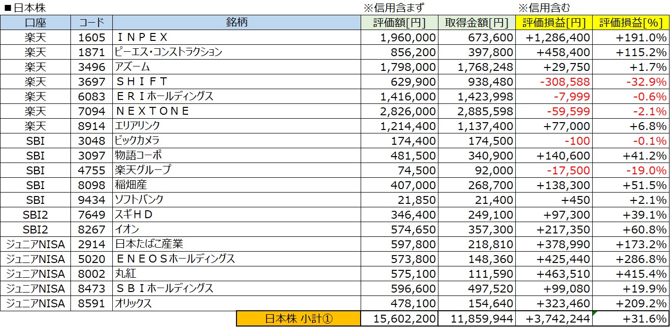 - 2023年:+251万円(売買損益 +176万円、配当金等 + 76万円)