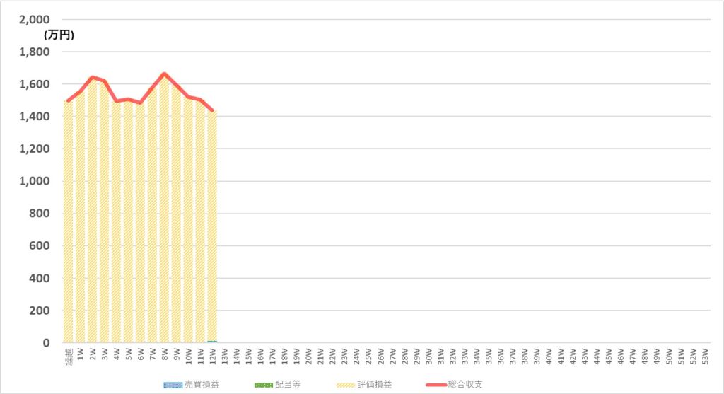 今週までの累計:+1,328万円(売買損益+991万円、配当金等+337万円)