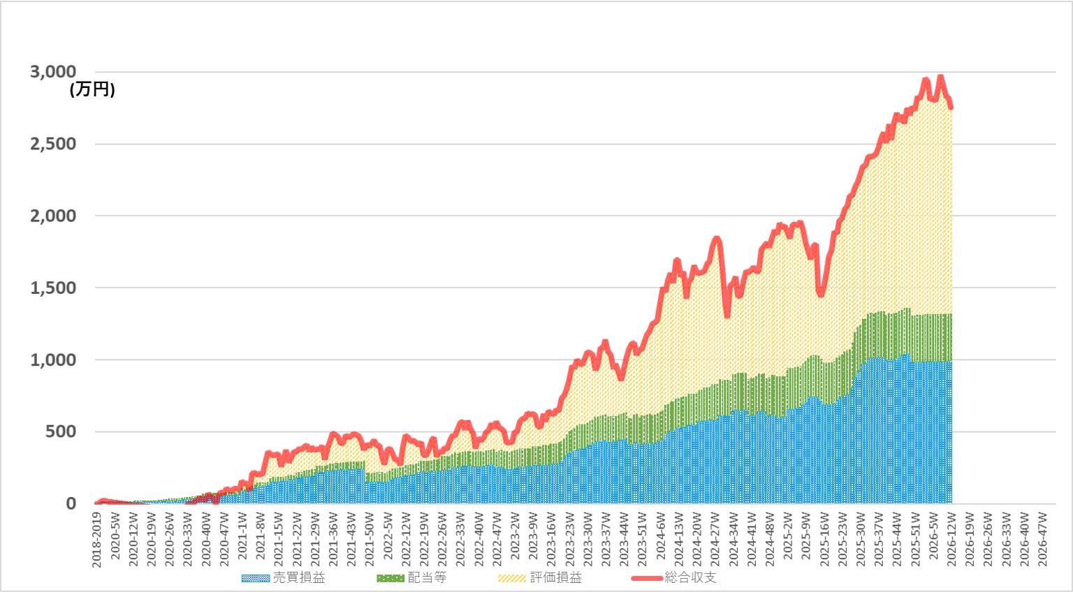 - 2026年:+11万円(売買損益 +8万円、配当金等 + 3万円)※3月4週時点